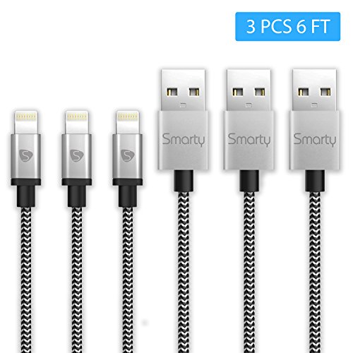-. Title : iPhone Charger Lightning Cable Smarty 6FT 3 Pack Nylon Braided - Long Fast Charging & Sync Cord for iPhone 7 / 7 Plus / 6 / 6S / 6 Plus / 6S Plus / 5 / 5S / 5C / SE, iPad 2 3 4 Mini Air Pro, iPod