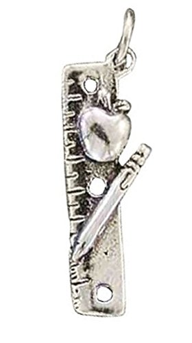 -. Title : Sterling Silver Womens 1mm Box Chain Ruler Pencil Apple Pendant Necklace