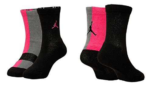-. Feature : Jordan Girl's Split High Crew Socks / QUANTITY: 2 pairs / Size: 10C-3Y / Color: Black/Pink/Grey / Great Gift Idea