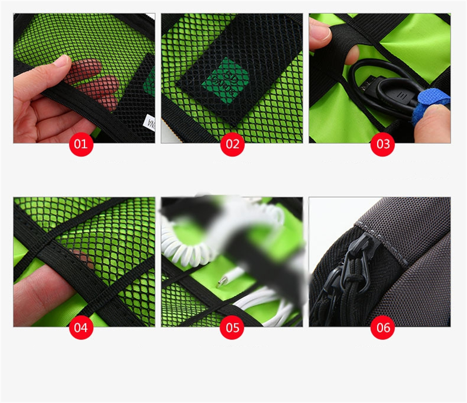 6 mesh pockets to store multiple sizes of USB drive