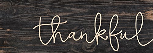 Thankful Script Design Black Distressed 16 x 6 Inch Solid Pine Wood Plank Wall Plaque Sign