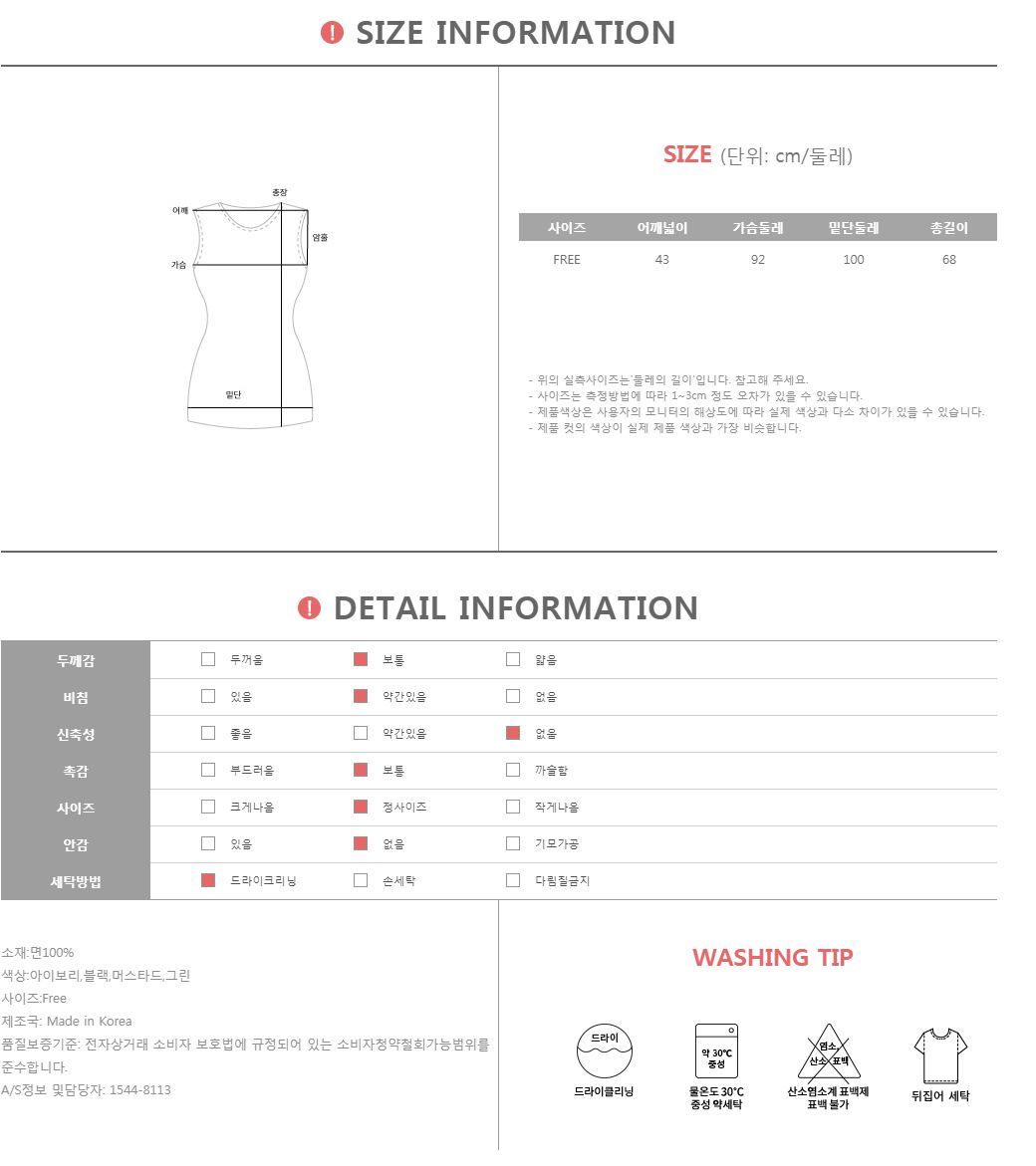 깔끔한 라운드 네크라인으로 편안하게 착용가능한 나시입니다~