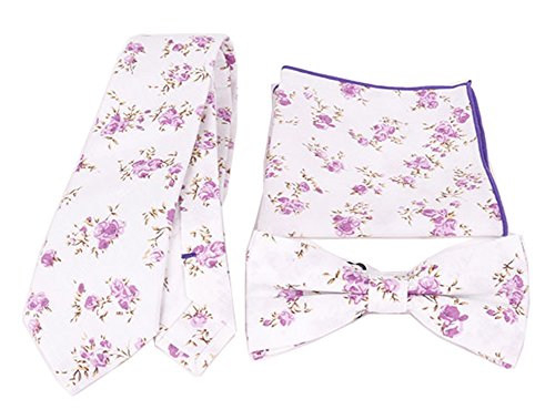 -. Title : L04BABY Men's White Purple Rose Cotton Necktie Set:Necktie+Pocket Square+Bowtie