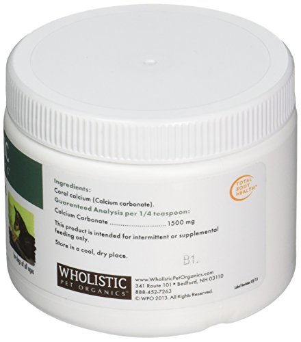 -. Binding : Misc. -. Brand : Wholistic Pet Organics -. EAN : 0877607000104 -. Feature : Synergistic form of calcium providing highly effective immune, bone, and muscle support / The most highly available and utilizable form of calcium because of its natural composition / Raw, natural whole food ingredients / Made in the USA and regulated by the NASC (National Animal Supplement Council) / Gathered from free-flowing parts of the reef -. Label : Wholistic Pet Organics LLC -. Manufacturer : Wholistic Pet Organics LLC -. Model : Sea Coral -. MPN : Sea Coral -. PackageQuantity : 1 -. PartNumber : Sea Coral -. ProductGroup : Pet Products -. ProductTypeName : PET_SUPPLIES -. Publisher : Wholistic Pet Organics LLC -. Size : 90g -. Studio : Wholistic Pet Organics LLC -. Title : Wholistic Pet Organics Sea Coral Supplement, 90g -. UPC : 877607000104