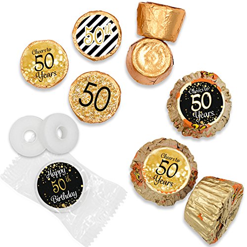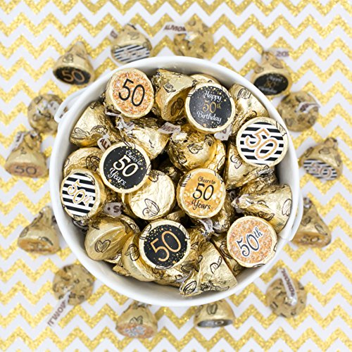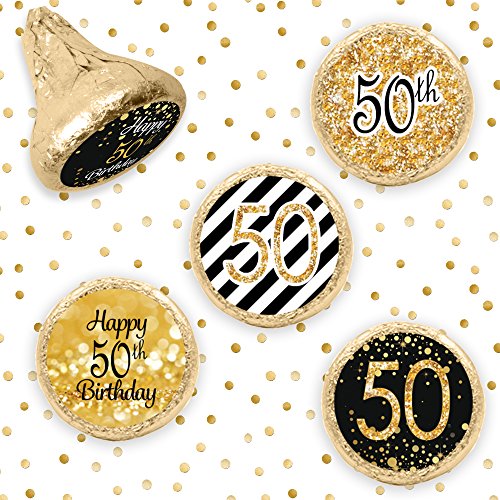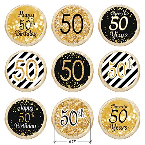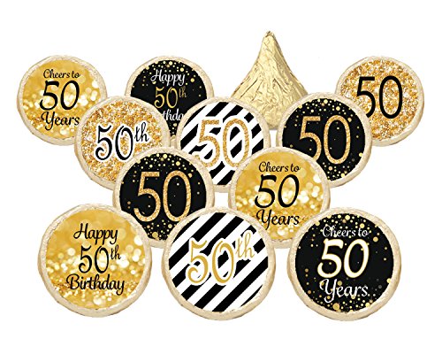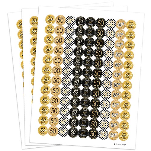 50th Birthday Party Favor Stickers - Gold and Black (Set of 324)