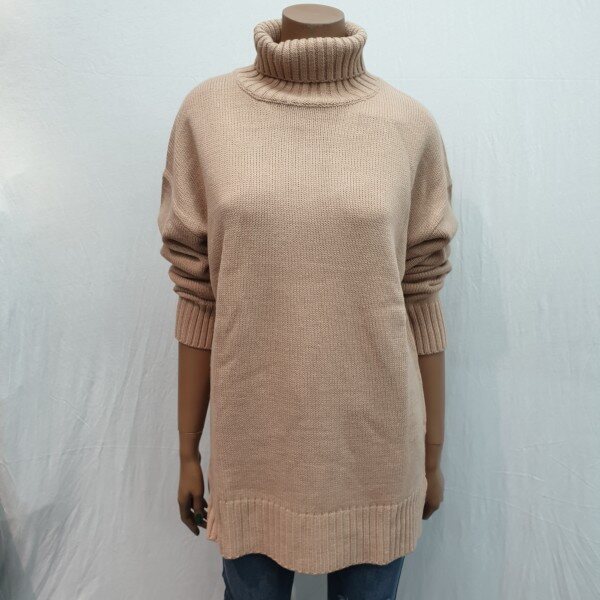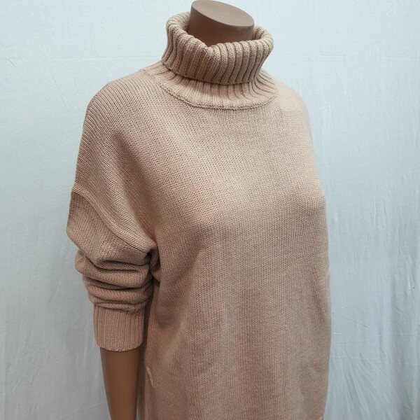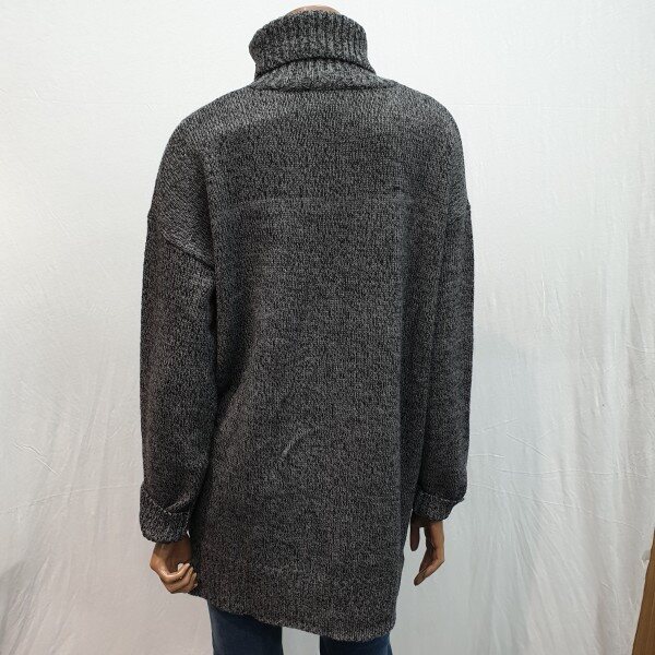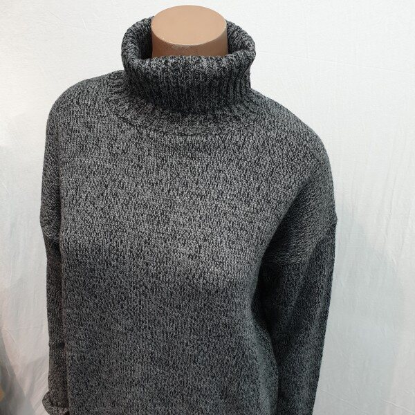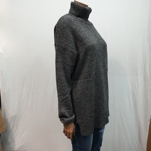 2018년 신상입니다. 전체 변형조직을 사용하여 깔끔하며 루즈핏으로 다양한 코디가 용이한 터틀넥 디테일로 보온성을 더해준 스웨터로 늦겨울까지 착용이 가능한 제품입니다.