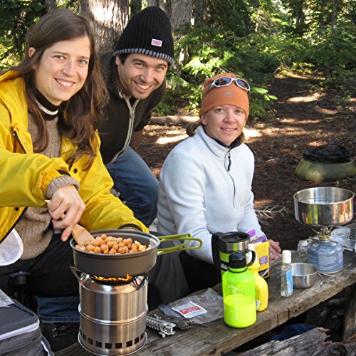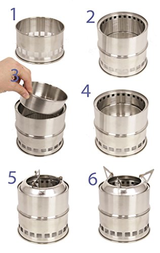 ERGONOMIC DESIGN | VERSITILITY: Designed exclusively for your comfort and efficiency, the all-purpose stove can withstand the extreme temperatures produces by various sources of fuel: wood, alcohol, peat, leaves, twigs and coal. It’s equipped with engraved anti-skid radians that securely ground your cookware to the unit.