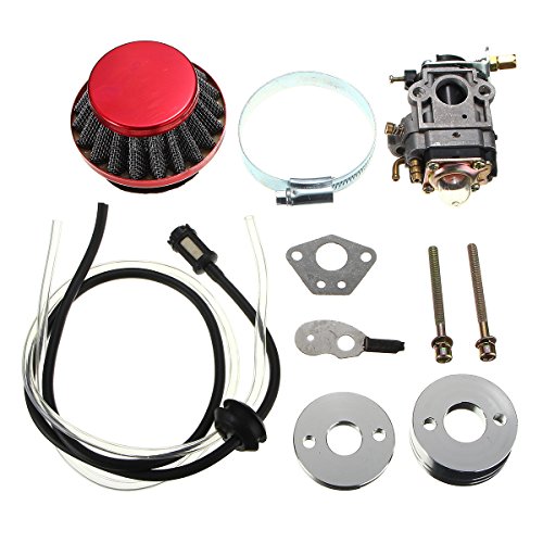 Specification: Product Name:Fuel Line Carburetor Air Filter Kit Carburetor with Air Filter,Fuel Line,Gasket for SUV 43cc 49cc Manufacturer Part Number:5654 Note: 1.We provide clear pictures, measurements where possible. Please check as much as possible to make sure the item is the one that you need. 2. Please allow 0.5-1 inch difference due to manual measurement.(1 inch=2.54cm) 3.The color of the actual items may slightly different from the listing images due to different computer screen, thanks for your understanding. 4.Instruction is not included,professional installation is highly recommended. Package Included: 2 X Fuel Line 1 X Carburetor 1 X Air Filter 1 X Adapter 1 X Choke Plate 1 X Choke Lever Mounting Screws