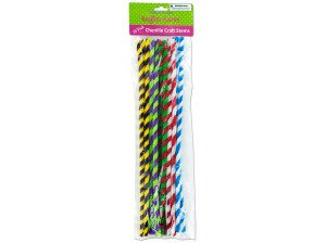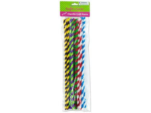 Chenille stems are a multi-purpose craft item. Use to make decorations, accessorize boxes or scrapbooks and use to embellish cards. There are 15 chenille stems per package. Color combinations include: green/purple, burgundy/yellow, red/green, red/white and blue/white. There are 3 of each color per package. Set comes in a poly bag with header card. Stems are 11 3/4" long.Feature