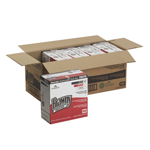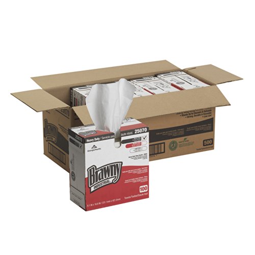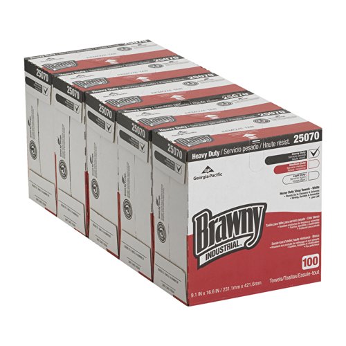 9.1" x 16.5" shop towel made of a blend of pulp fiber and polypropylene for an industrial wipe that is thicker, more absorbent, and stronger than regular paper towels