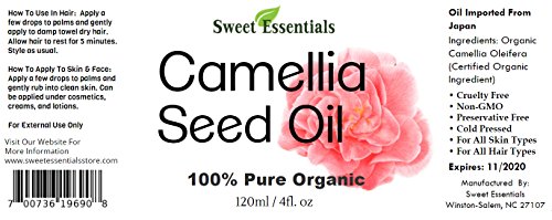 Camellia oil is a non-greasy oil that revitalizes hair, skin, and nails, protects the skin from UV rays, reduces scars and new stretch marks, and gentle enough on sensitive skin. It is similar to grape seed oil in texture yet absorbs quickly into hair, skin, and nails with exceptional penetration properties as it is close to skin's natural sebum.