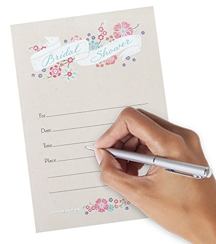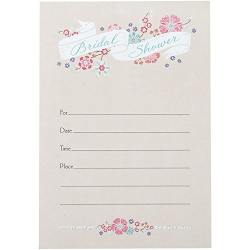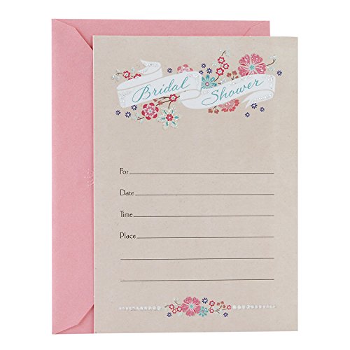 Studio : Hallmark Publisher : Hallmark Binding : Kitchen Product Description Hallmark Invitation Cards are the perfect start to every great bridal shower. Made with high-quality cardstock paper, these cards feature the phrase "Bridal Shower" on a white scroll against a floral background with glitter accents. This set includes 10 invitation cards and envelopes All Hallmark invitation cards are made with paper from well-managed forests. Hallmark was founded in 1910 when 18-year-old J.C. Hall arrived in Kansas City, Missouri, with a couple of shoeboxes of postcards under his arm and the American dream in his heart. Hallmark greeting cards are sold online and in nearly 40,000 retail stores across the globe and people continue to recognize the iconic Hallmark brand as "the very best." 0