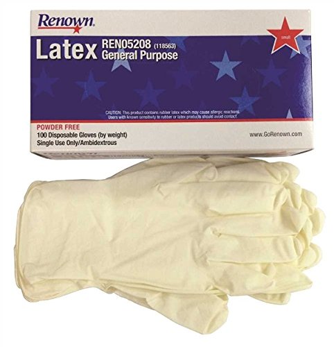 Renown REN05208 Ambidextrous Disposable Powder-Free Latex Gloves, 118563, 5 mil, Small, Natural
