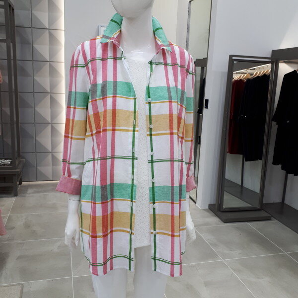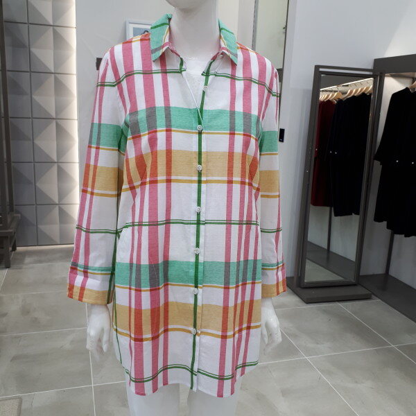 면100% 블라우스예요 여름자켓으로 입으시기 좋으세요66사이즈 총장 77cm입니다
