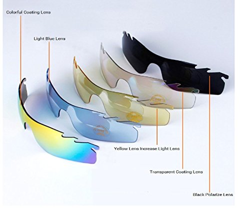 SUPERIOR PERFORMANCE! 5 MULTI-PURPOSE LENSES: Complete sunglass package comes with a non-scratch pouch, protective case and lens cleaning cloth. All day comfort with added soft nose pads. 5x the protection with 5 Color Lenses - Colorful for Multifunction use, Light Blue (cloudy/overcast - Excellent for Climbing), Yellow (Driving/Night-vision), Transparent (Dust Proof & helps with foggy conditions), and Black (Polarized and great for Daylight).