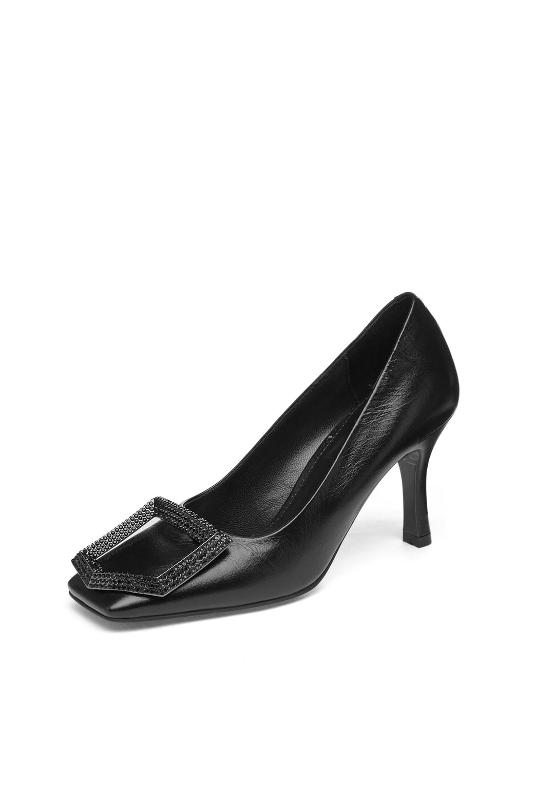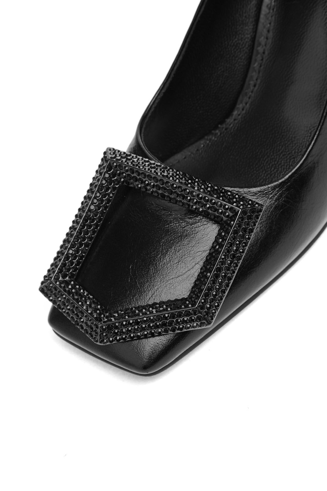 - 올블랙의 컬러와 각진 스퀘어 토가 시크한 느낌을 주는 아이템.