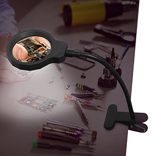 ✔DETACHABLE DESIGN: Metal clamp (clamp opens to maxium of 2.5 inches) and handle interchangeable. The heavy duty metal clamp firmly hold the study desk, table,bedhead,edge, saving the space and offering hands free magnifier and light. While the handed magnification makes it available to move to any desired place and achieve more flexibility.Buy It Now!