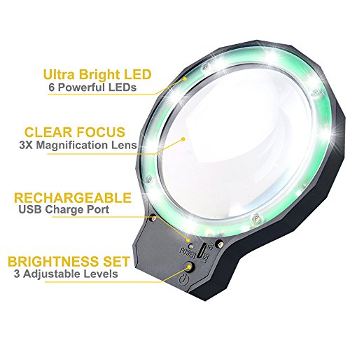 ✔LIGHTED MAGNIFIER: Come with K9 optical 3X magnifying glass lens (distortion-free),with a focal range of up to 7 inches, and powerful bright LEDs to bring small and intricate details back into clear focus, makes it much easier to see.Great for doing precision work such as jewelry,crafts,sewing,electronics and more.
