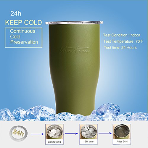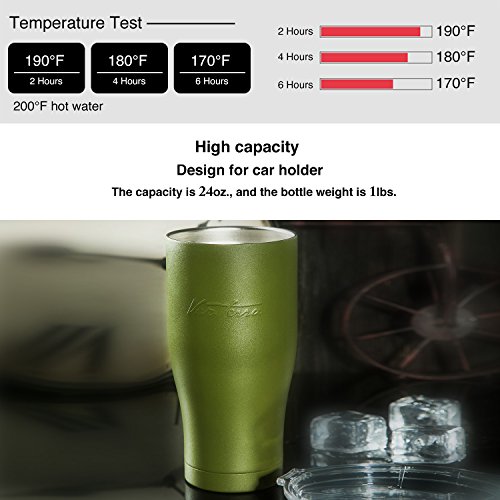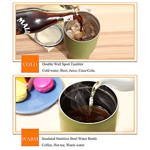 THOUGHTFUL DESIGN: Keeps cold 24 hrs, hot 12 hrs. Wide mouth access makes it easy to add ice cubes, citrus slices or tea bags. Double walled vacuum insulated style will not sweat and no need coaster even when filled with ice