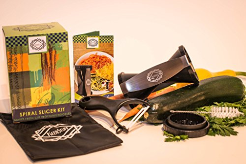 - QUALITY: The KeenStuff vegetable spiral slicer is molded using high quality ABS plastic for a lightweight feel, fitted with top-quality stainless steel Japanese blades for the sharpest and quickest slice. The plastic is BPA-free. It's dishwasher safe for an easy clean. Compact, easy to store, guaranteed not to rust or lose sharpness qualities. Convenient and user-friendly...comes assembled and ready-to-use.