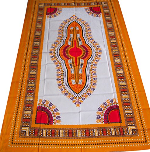 RaanPahMuang African Dashiki White Cotton Fabric Suitable for 1 Shirt Design, Multicolour Yellow