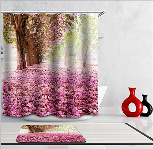 Blossom Tree Shower Curtain Pink, 72 by 80 inches, Bathroom Mildew Resistant Waterproof Anti Bacterial Polyester Fabric Curtains Hooks Set 49D print Home Decor Bath Accessories Collection