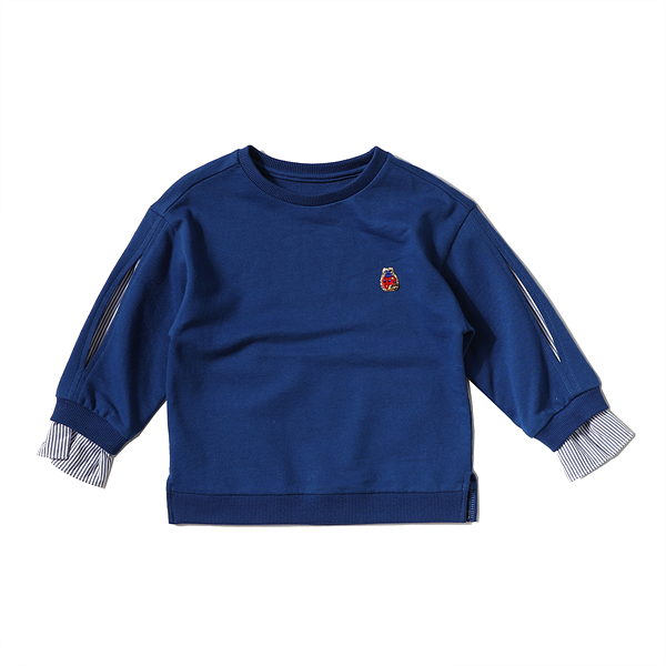 -소매라인에 트임을 주어 네이비 스트라이프 원단으로 덧 댄 세련미가 있는 티입니다