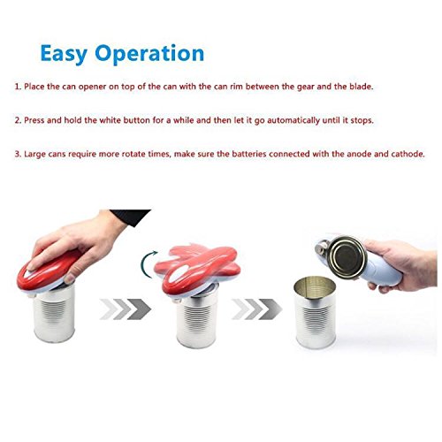 * SUIT FOR ANY SIZE OF CAN--Effortlessly opens cans of any size at the push of a button. Please be noted that the can top / the blade should be bend, it is normal and not defective