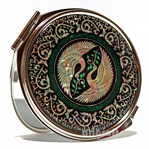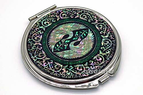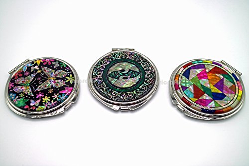 Ari Crafts Mother of Pearl Compact Portable Cosmetic Makeup Round Mirror Handbag Purse Pocket Hand Mirror Metal Mirror Portable Mirror