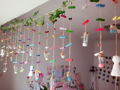 ✔Each clothes pin measures: 1.38 * 0.41 * 0.28 inches (35 mm * 10 mm * 7 mm); Come with (16 Feet) jute twines make it more convenient to hang any photos or artworks.