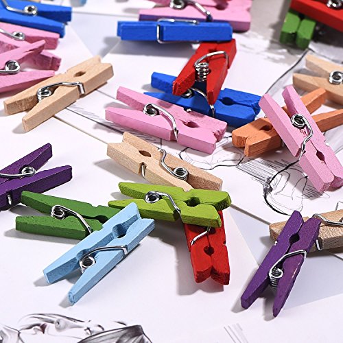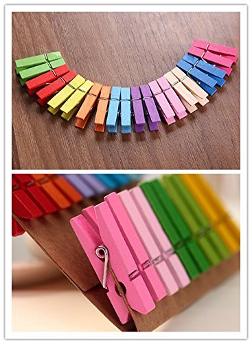 ✔Come with 100 pieces of mini wooden clothespins in 10 different colors + jute twines. Can meet your needs well