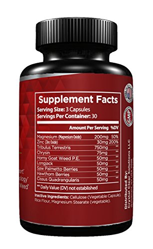 -. Title : CCS Ultra Testosterone Booster for Men, Natural Supplement with Tribulus Terrestris and Horny Goat Weed Best for Help Increasing Libido Energy and Stamina for Sex, 90 Veggie Capsules, 30 Day Supply