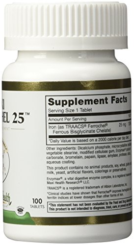 -. Title : Maxi Health Ferrochel 25 mg - Extra Gentle Iron Formula - Supplement - 100 Tablets - Kosher