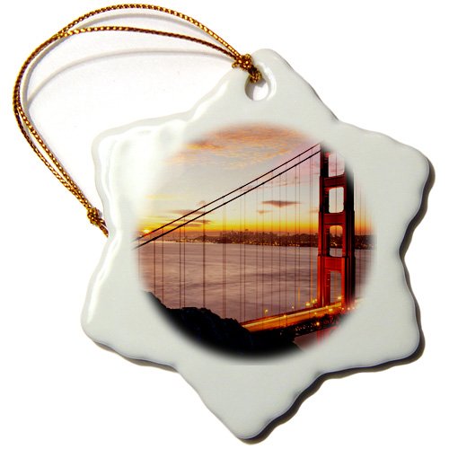 3dRose orn_189522_1 Golden Gate Bridge with San Francisco Beyond, California, Usa Snowflake Ornament, Porcelain, 3-Inch