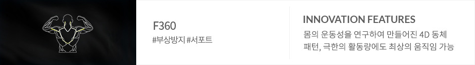 01 F-360 입체 패턴을 적용하여 소매와 어깨 부위에 편안한 활동성 을 제공하는 티셔츠입니다.