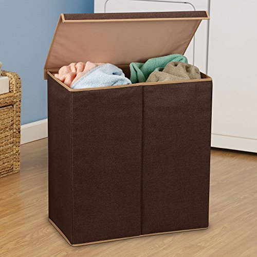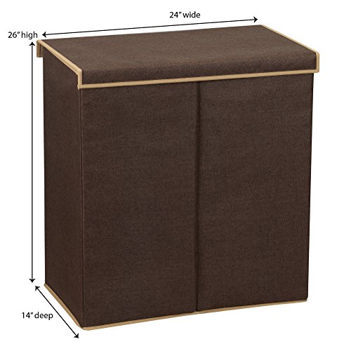 Household Essentials 5614 Double Hamper Laundry Sorter with Magnetic Lid Closure | Brown Coffee Linen