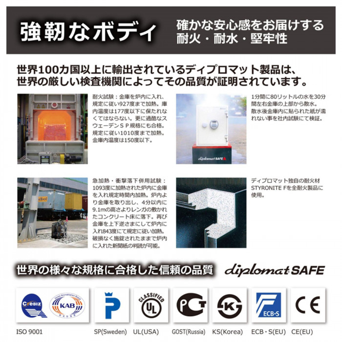 耐火・耐水に優れており、シンプルな外観はオフィスから家庭まで設置場所を選びません。 |