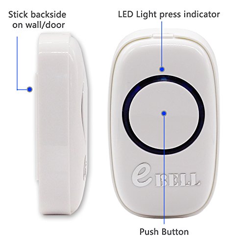 -. Title : eBELL Wireless Doorbell Door Chime with LED Indicator 1 Remote Button and 1 US Plug-in Receiver Working at Max 1000ft Range Has 52 Chimes 433MHz Learning Code Use for Home Store Office / White
