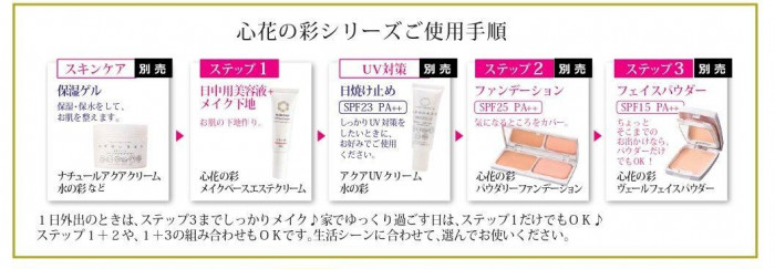 | 成分 | 水、パルミチン酸エチルヘキシル、BG、酸化チタン、ステアリン酸、ベヘニルアルコール、ステアリン酸グリセリル、タルク、シア脂、アルギニン、酸化鉄、オウゴン根エキス、カミツレ花エキス、センチフォリアバラ花エキス、水溶性コラーゲン、ヒアルロン酸Na、トコフェロール、フェノキシエタノール |