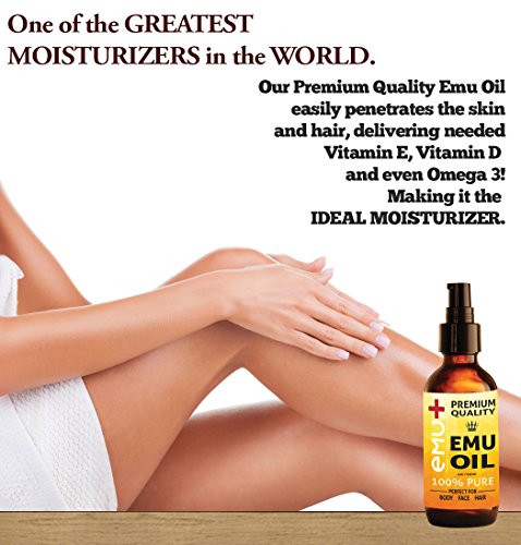 [Product Information]- PREMIUM QUALITY BENEFITS from Premium Quality Emu Oil. Used for centuries and known for its ability to alleviate redness, itching and dryness, stretch marks, and even work wonders on old scars our Emu Oil is 100% Pure Emu Oil. Nothing more. Nothing less.