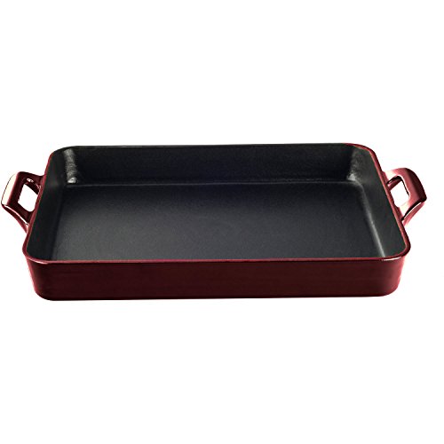 -. Title : La Cuisine LC 8105 1 Piece Shallow Cast Iron Roasting Pan with Enamel Finish, Ruby