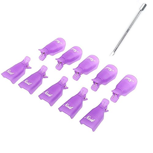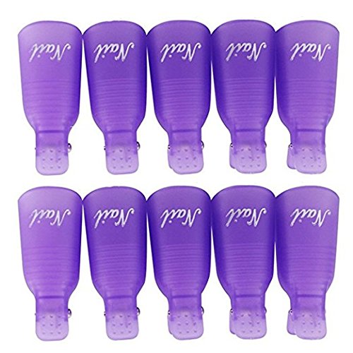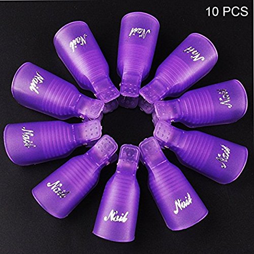 Leeshar Beau 10Pcs Reusable Plastic Acrylic Nail Art Soak Off Cap Clip Uv Gel Polish Remover Wrap Cleaner Cap Tool (Purple)