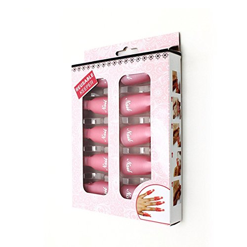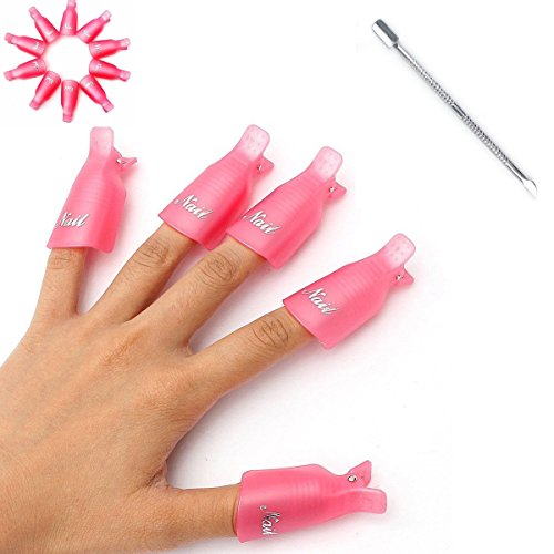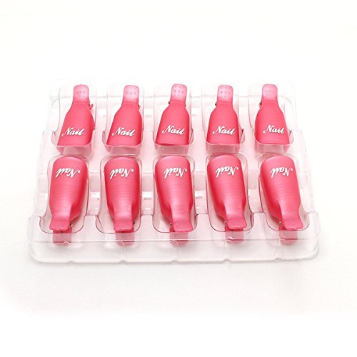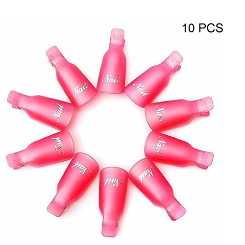 Leeshar Beau 10Pcs Reusable Plastic Acrylic Nail Art Soak Off Cap Clip Uv Gel Polish Remover Wrap Cleaner Cap Tool (Pink)
