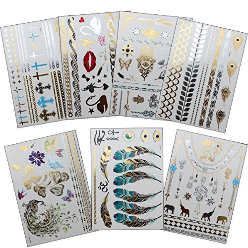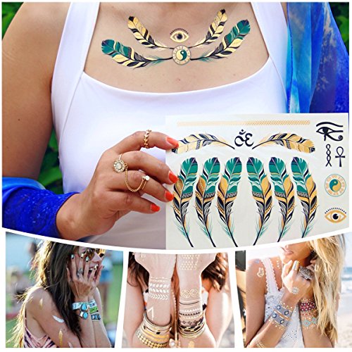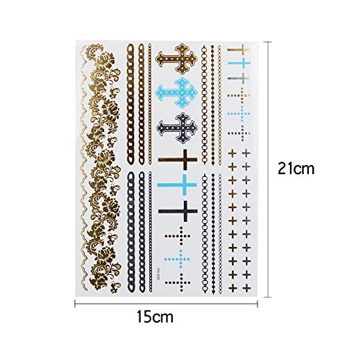 -. Feature : ✿15 SHEET: over 250+ cool & stunning colorful designs including elephants, necklaces, butterflies, feathers, eye,skull ,cross,letter and more,enough and good to share with your friends. / ✿PREMIUN QUALITY: waterproof, will last several days and keep its flash & glitter look,perfect for any occasion,such as birthday parties, play dates, girls' night out,bachelorette parties, sleepovers, weddings, bridal showers, music festivals, beaches. / ✿SAFE: these tattos are non-toxic and fun for all ages, including kids & adults, and can be worn anywhere on your body,ankle, wrist, back, chest, arm, nails, shoulder, forearm, hands and more. / ✿ QUICK & EASY TO APPLY: up your look in less than 1 minute with this hot new trend. These stylish foil tattoos are easily removable by rubbing baby oil.Easily customize and create your own unique body art! / ✿ NO RISK: 100% Satisfaction Guaranteed , 30 days free exchange and returns. Please contact us first if there is any question. We will do our best to meet your request and solve your problem quickly and efficiently!