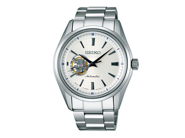 自動巻(手巻つき)、10気圧防水、メイド・イン・ジャパン、スクリューバック、シースルーバック、秒針停止機能、石数24石、カラー:ホワイト(文字盤)、シルバー(ベルト)