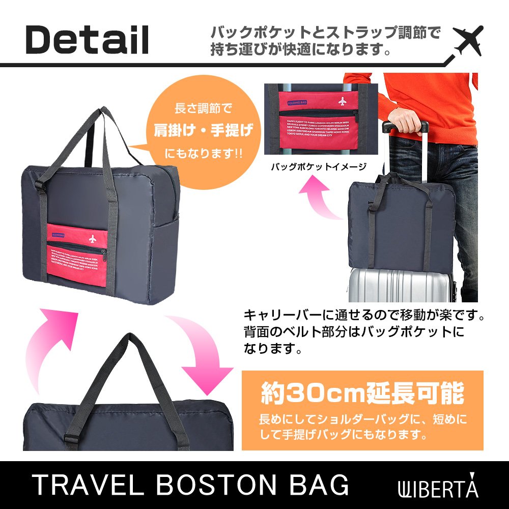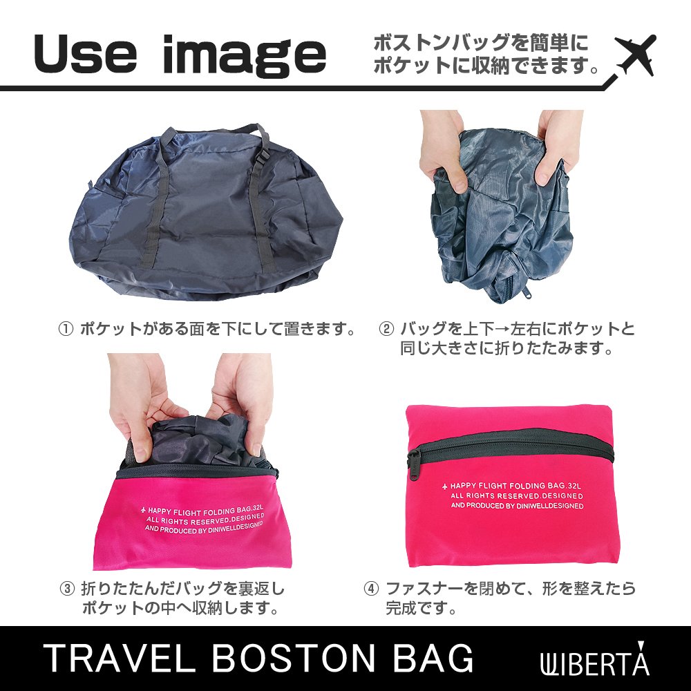 The folding Boston bag of LIBERTA is compact at the time of storage, has a large size at the time of deployment and a sense of size excellent in convenience very much.