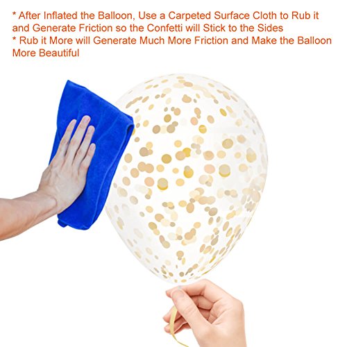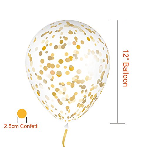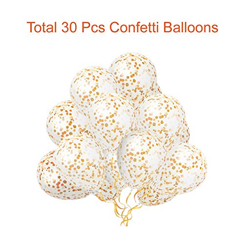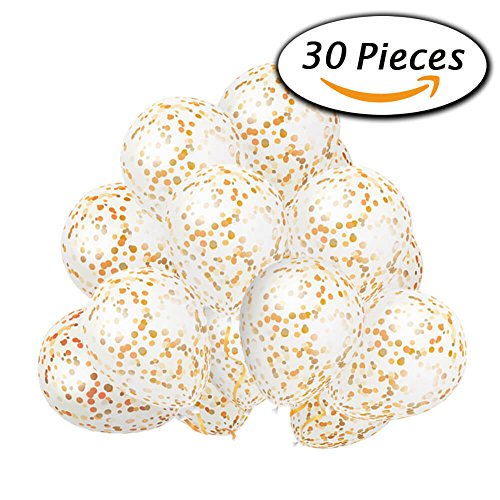 Studio : PAXCOO Publisher : PAXCOO Binding : Toy Product Description Create an inviting party atmosphere with a pinch of panache using these glitzy Gold Confetti Balloons. After inflating them with air or helium (balloons ship flat). To get the confetti to stick to the sides, rub inflated balloons on a carpeted surface to generate friction. Once your party balloons are ready to go, fasten them with string or curling ribbon anywhere around the room. These confetti balloons are sure to add shine to your party. Specification: -Material: latex paper -Color: transparent gold -Product size: 12 inches when inflated Package Included: -30 pieces gold confetti balloons (confetti has been put into the balloons) Warning: Children under 8 years can choke or suffocate on uninflated or broken balloons. Adult supervision required. Keep uninflated balloons away from children and discard broken balloons at once.