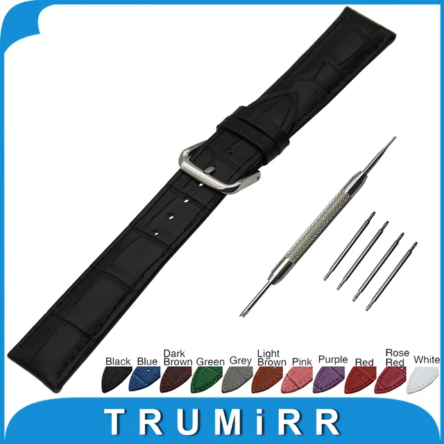 | [해외] 18 미리메터 19 미리메터 20 미리메터 21 미리메터 22 미리메터 24 미리메터 악어 정품 가죽 손목 범용 시계 밴드 스테인레스 스틸 버클 스트랩 손목 팔찌 |