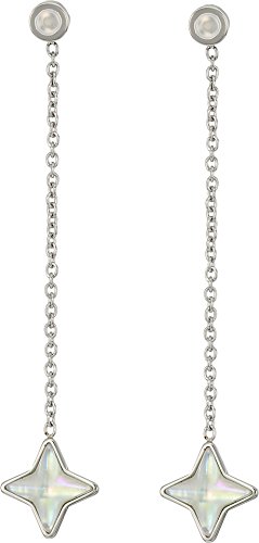 The Fossil® Linear Mother of Pearl Star Earrings Jackets flaunt star charms. Mother-of-Pearl star charm drop earrings. Silver-tone finish. Post back closure. Imported. Measurements: Width: 2⁄5 in Height: 2 3⁄10 in Weight: 0.1 ozFeature