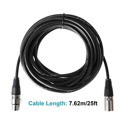 2 Pack DMX Cables 25ft/7.62m 3-Pin Signal XLR Connection DMX512 Stage Light Cable Wire Male to Female for Moving Head Light, Par Light